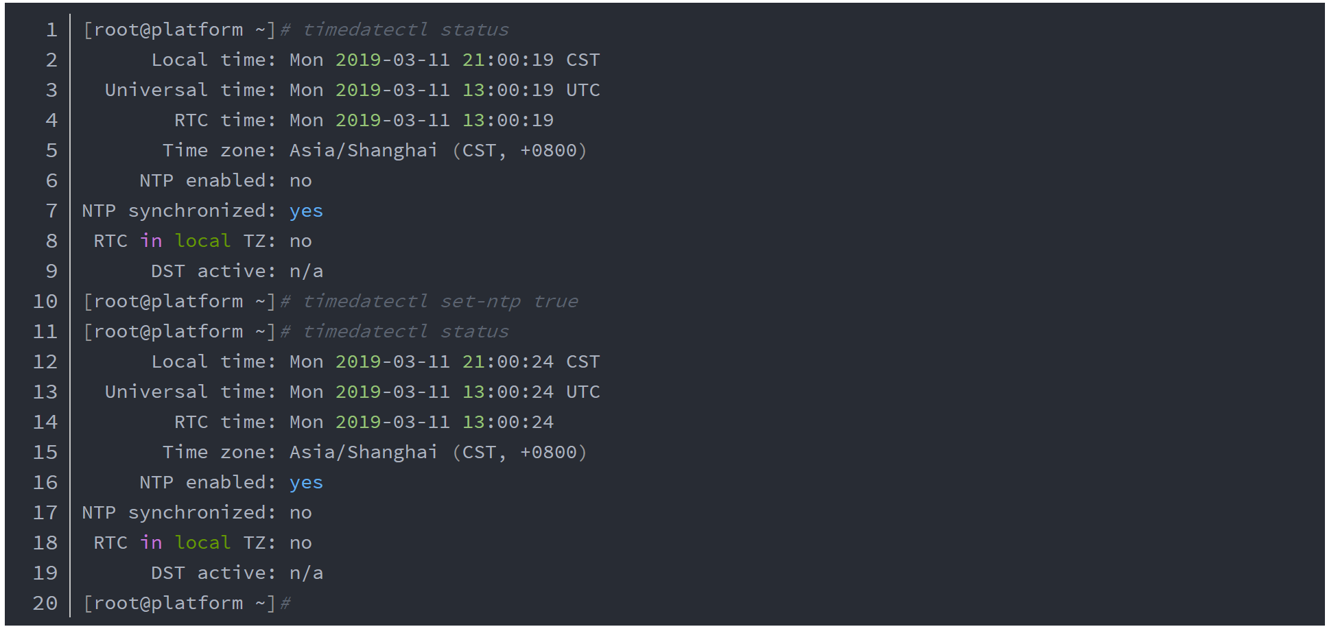 命令:timedatectl set-ntp true
